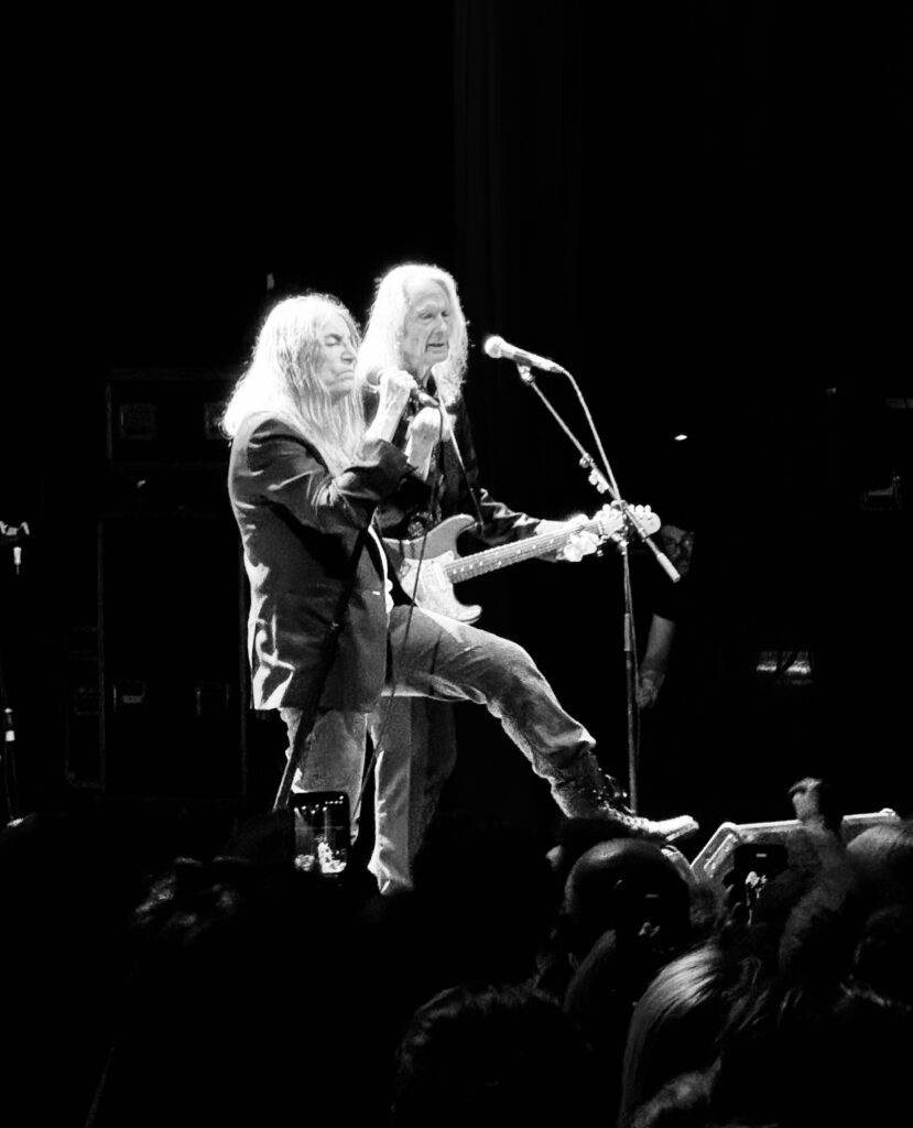 Mais ce sont les deux titres les plus « ouverts » de Horses – les poétiques et déstructurés Birdland et Land – qui nous transportent ailleurs 🌙. Patti déploie cette énergie quasi chamanique qui la relie à son public. La salle tout entière entre en transe, nos mains battent la mesure sans même y penser, comme si la pulsation de la musique s’était fondue dans celle de notre cœur.